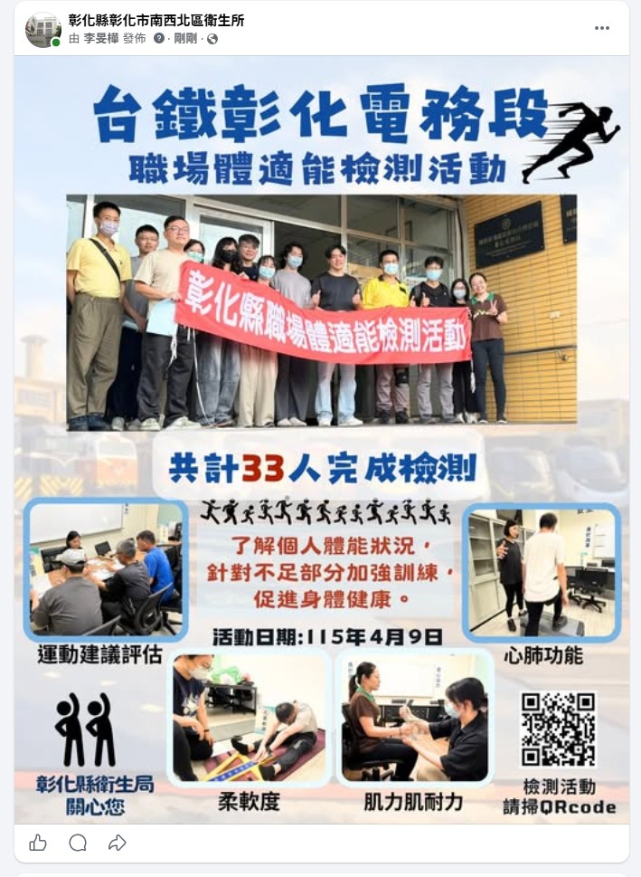 【活動成果】台鐵彰化電務段體適能檢測